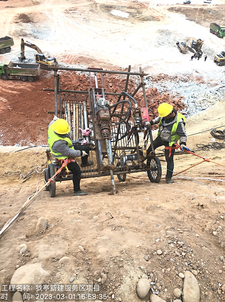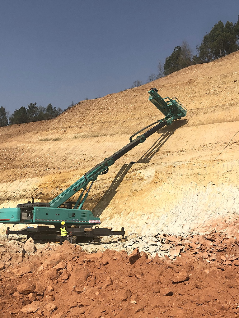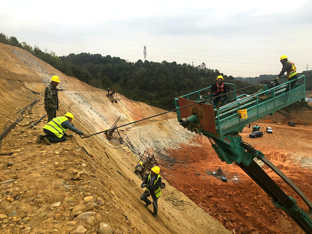 新建猇亭服務區路塹邊坡綠化防護優化工程項目-右場坪高邊坡-潛孔鉆鉆孔、高臂鉆鉆孔↓