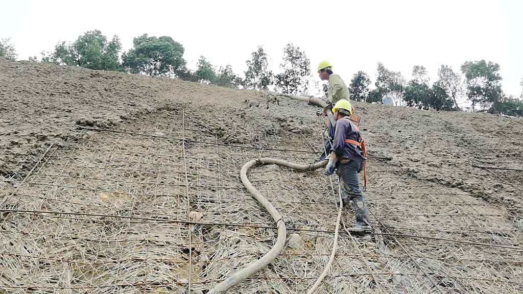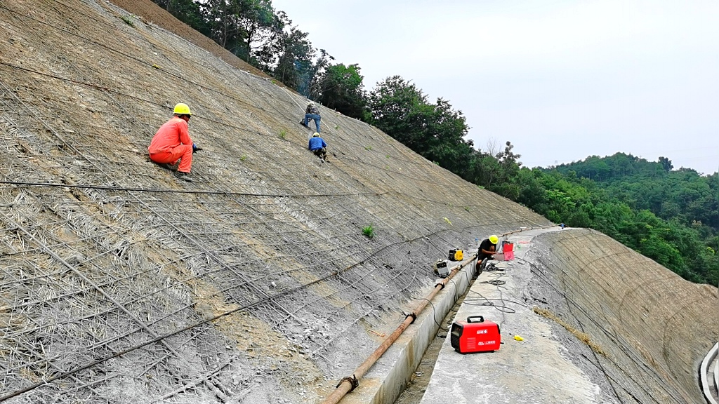 新建猇亭服務區路塹邊坡綠化防護優化工程項目-右場坪高邊坡-鋪設鋼筋網↓