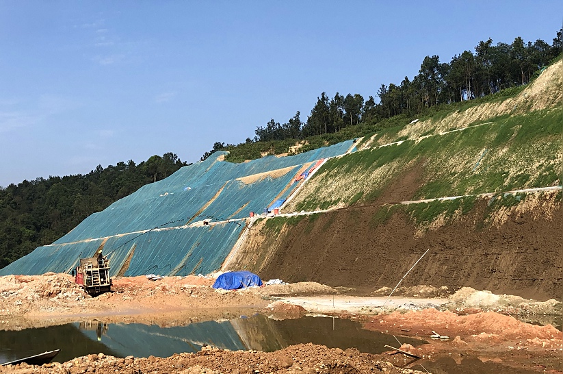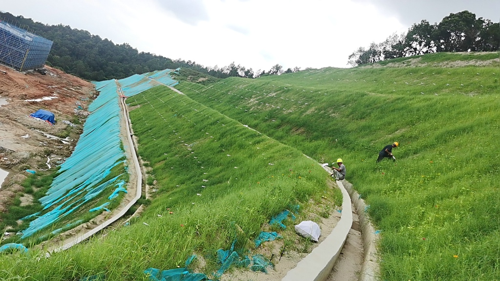 新建猇亭服務區路塹邊坡綠化防護優化工程項目-右場坪高邊坡-覆蓋無紡布↓