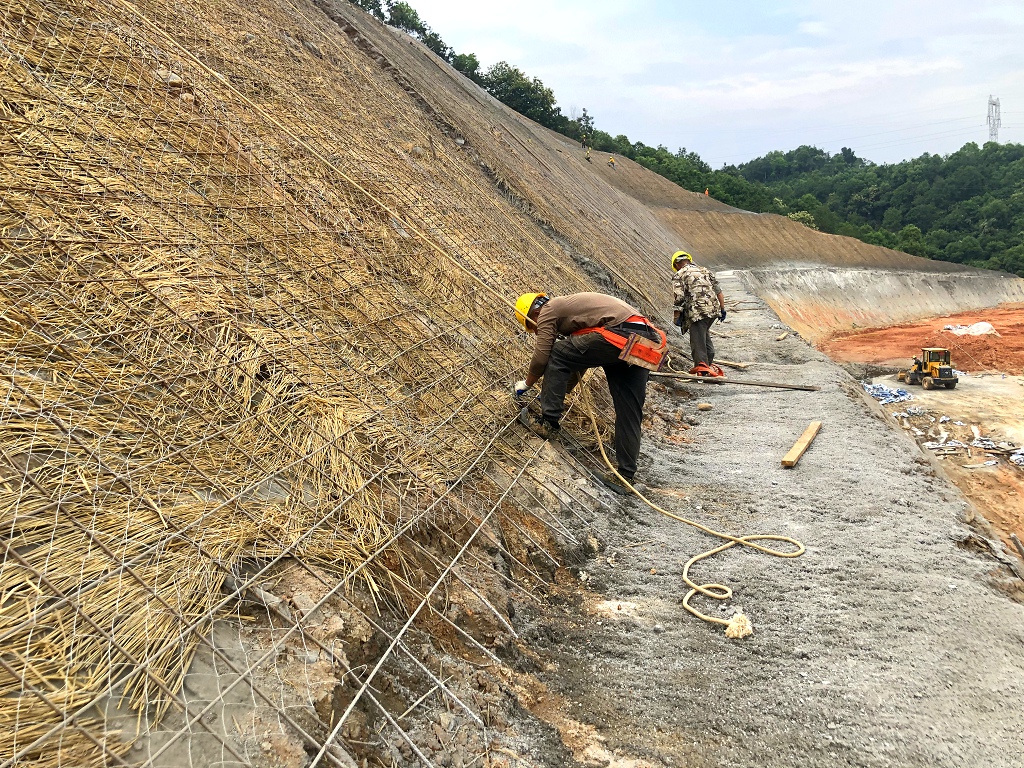 新建猇亭服務區路塹邊坡綠化防護優化工程項目-右場坪高邊坡-掛草簾↓