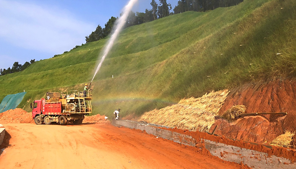新建猇亭服務區路塹邊坡綠化防護優化工程項目-右場坪高邊坡-灑水養護↓