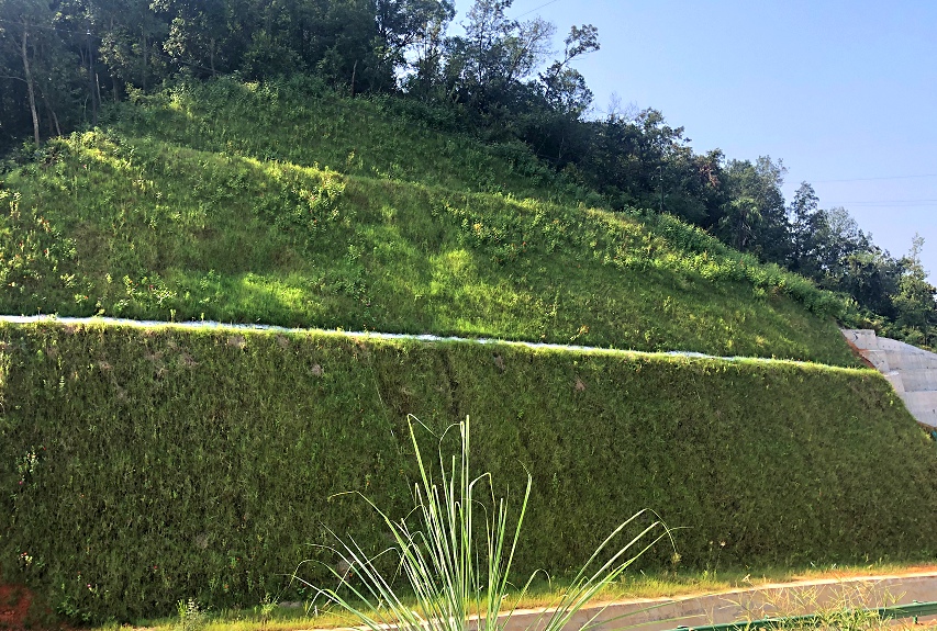 新建猇亭服務區路塹邊坡綠化防護優化工程項目-右場坪高邊坡-噴播完成后4個月↓