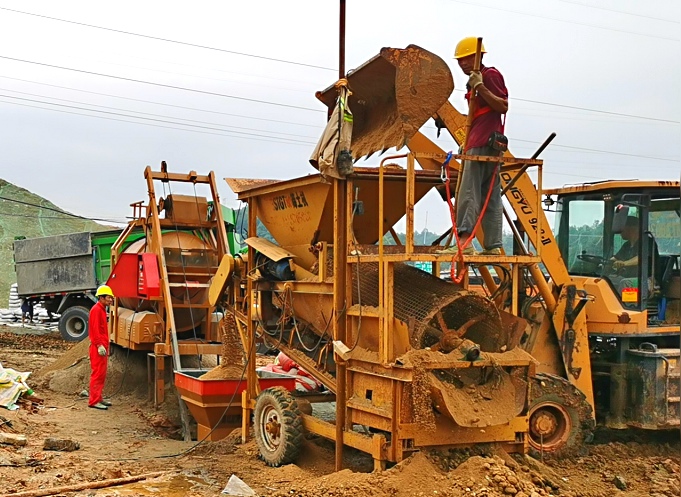 新建猇亭服務區路塹邊坡綠化防護優化工程項目-右場坪高邊坡-篩土、拌料↓