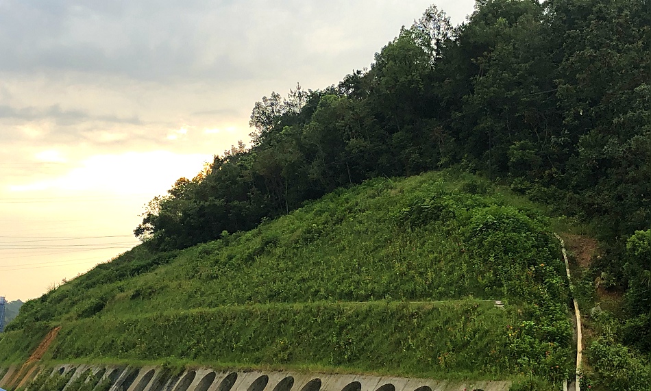 新建猇亭服務區路塹邊坡綠化防護優化工程項目-左場坪GL1K0+103-212坡-噴播完成后4個月↓